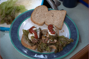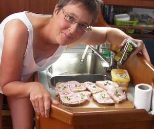 Gisterenavond heb ik onze journaals op het internet bijgewerkt. Ik ontdek nu dat ik vergeten ben te melden dat de naaimachine het weer goed doet. De winkelier in de Singerwinkel draaide aan dezelfde schroefjes als waar René aan begon, maar omdat hij waarschijnlijk al honderden naaimachines gerepareerd heeft, deed hij dat met wat meer fingerspitzengefühl en de naaimachine loopt weer zo als een naaimachine hoort te lopen. Zaterdagochtend ontgrendelde ik de beugel van het weckpotje en zowaar het deksel bleef dicht. Het wecken is dus gelukt, nu nog kijken hoe het smaakt … straks ergens op de oceaan. Zaterdagavond besloot ik de vacuümverpakte entrecote bij de bloemkool op te eten. Ik heb op internet gelezen dat vacuümverpakt rood vlees één week houdbaar is. En dat klopt. Na acht dagen was de entrecote bedorven. Helaas. De varkensfiletjes zijn nog wel goed.