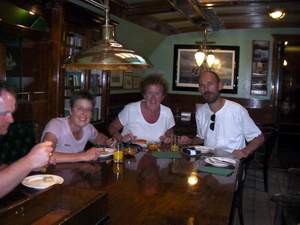 Dennis oefent met Helena de PADI-duikoefeningen onder water rondom de boot. Ik zwem een rondje om de boot, maar het stroomt te hard om onbezorgd een stuk te zwemmen. Het regent de hele dag, maar voor de verandering wordt het niet erg vochtig binnen. In de ochtend regent het zo hard dat een cruiseschip een extra rondje vaart voor hij gaat aanleggen. Ik doe dat ook wel, bij ons duurt het aanleggen dan vijf minuten extra. Het cruiseschip is meteen een uur achter op schema. Aan het eind van de middag lopen we over de boulevard richting centrum. Bij de snackbar hebben we trek in patat, maar we moeten natuurlijk wel gezond eten. We gaan terug naar de boot, maken een koolsalade en gaan gewapend met een pan vol salade, borden, bestek, drinken en eigen mayonaise opnieuw naar de snackbar wandelen. Op een bankje genieten we van onze vette hap, terwijl we naar een vertrekkend cruiseschip kijken. Als het een eind op weg is, lijken de vele lichtjes wel een complete drijvende stad.