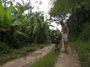 We hebben de vouwfietsjes weer opgegraven uit de bakskist. Het is heerlijk om weer even te trappen. Met de fiets is de supermarkt beter bereikbaar. Het is ook hier behoorlijk leeg in de schappen. Volgende week donderdag komt de nieuwe voorraad. ’s Avonds spannen we een extra hor tegen de muggen over de lijst van de deur naar de voorhut. We moeten nu via het voorluik op het voordek naar bed. Als we hier doorheen klimmen gaan er direct minstens drie muggen mee. Als de hor weer voor het luik zit, nog even jagen met de elektrische vliegenmepper, maar dan kunnen we ook heerlijk slapen zonder gezoem en zonder geprikt te worden.