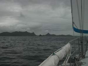 Samen met Tom en Karine van de Alcatraz neemen ik afscheid van Dennis op het vliegveldje. Hij vliegt naar Nederland. Wij brengen de middag met vrienden van Tom en Karine op het strand van Santa Cruz door. Door de regen is het water vol blubber. We eten patat bij de Grote Berg. Men zegt dat hier de lekkerste patat van het eiland is en het is inderdaad heerlijk. Het is maar goed dat we patat gegeten hebben, want het duurt nog lang voor we weer aan boord zijn. We stranden met lekkende transmissie olie. Je kunt dat spul hier bij een Chinees supermarktje kopen, maar het stroomt er net zo hard weer uit. We krijgen van de autoverhuurder een lift naar de boot.