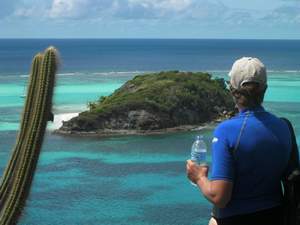 “We kunnen altijd zeggen dat we getracht hebben lopend een ankervergunning te bemachtigen,” zeggen we tegen elkaar als we een klein wandelingetje bij Fuikbaai maken. Vanaf het strand zijn we over een onverhard pad naar een weg gelopen. Onderweg zien we papagaaitjes in de bomen zitten. Langs de kant van de weg groeien passiebloemen als ‘onkruid’. Het is best mooi en vanaf boven ziet Fuikbaai er idyllisch uit. Maar wat is het heet. We gaan snel weer terug en even afkoelen in het water voor we terugroeien. Van Tom mag ik mijn was komen brengen. Ik hoop eigenlijk altijd dat iemand mijn was wil doen, maar dat ooit een stoere motorrijder mijn was zou doen, had ik nooit verwacht. Tom heeft een wasmachine aan boord en hij moet toch stroom draaien. De was komt er keurig schoon weer uit. Dat zijn de betere deals. Dennis helpt iemand en die persoon wast of kookt voor mij. Na de lunch zeilen we voor de wind braaf terug naar het Spaanse Water. De Minor die we kennen van Tobago Cays is inmiddels gearriveerd en een gezellige borrel volgt. ’s Avonds bespreken we onze korte termijn plannen. We gaan via Klein Curaçao naar Bonaire. Vanaf Bonaire gaan we via de Venezolaanse eilanden: Avis en Los Roques nog wat verder naar het oosten om vanaf daar de slag naar het noorden, ongeveer St. Maarten, te maken. De laatste tocht zal pittig zijn. Hoog aan de wind tegen de stroom in. De verdere plannen: Cuba en Amerikaanse Oostkust vullen we wel weer in als we in St. Maarten zijn.