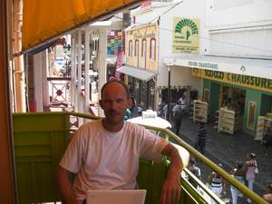 Terwijl Dennis de ramen in de buiskap maakt, ga ik een dagje met Annette van de Panache naar de stad. We gaan shoppen. Gezellig kletsend lopen we door de winkelstraat. Plotseling sleurt Annette me een modezaak in. “Hier moeten we maar eens kijken,” zegt ze. “O ja,” bedenk ik, “ik was hier met een missie: een rokje kopen.” Liever was ik lekker doorgelopen en ergens op een terrasje gaan zitten in plaats van jurken passen. Voor je het weet loop je op de boot en op de kant altijd in een korte broek. Annette en Shelley hadden op mijn verjaardag allebei een rokje of jurkje aan en dat ziet er toch wel een stuk vrouwelijker en leuker uit. Dat wil ik ook. Ze zeggen wel ‘hoe ouder hoe gekker’ maar bij mij lijkt het wel hoe ouder hoe normaler. Annette speelt vandaag voor mijn personal shopping assistent. Geroutineerd laat ze een paar jurkjes zien en aan de hand van mijn: te bloot, te roze, te veel decolleté weet ze snel mijn smaak te achterhalen. Als (creatief) schilder vertrouw ik qua kleur helemaal op haar. Een wel aardig jurkje voor nog geen negen euro koop ik toch niet, omdat Annette heel kritisch vraagt: “Ga je dit ook echt aan doen?” Een jurk van 90 dollar staat fantastisch maar dat past echt niet meer in mijn cruisers budget. Uiteindelijk koop ik een sportief kort rokje waar ik me helemaal happy in voel. Mission completed. Ik trakteer ons op een lunch bij de Gouverneur. Heerlijk zo’n vrouwendagje. Als ik terugkom heeft Dennis bijna alle ruiten van de buiskap er in zitten. De arme ziel is bijna oververhit en gaat even plonzen.