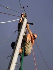 Halverwege volgende week komt er een weergaatje om naar het noorden, de Dominicaanse Republiek of Puerto Rico, te zeilen. Tijd om de ruiten weer in de buiskap te zetten. De kunststof ramen gaan in de felle zon achteruit. Daarom halen wij ze er uit als we de boot voor langere tijd achterlaten. Het geeft ook een heerlijk fris windje in de kuip. Het verwijderen van de oude lijmresten van de rubbers is een flinke klus. In de avond gaat Dennis op de fiets naar het vliegveld om zijn neef Michiel, de co-piloot, welkom te heten. Ik doe intussen het radionetje "Dutchies at sea" en leidt -met het zweet in mijn handen van de concentratie- de ronde met een recordaantal van 14 inmeldingen.