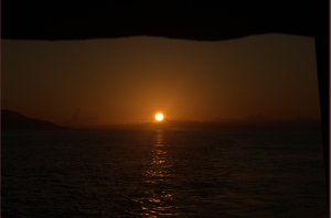 Ik ben blij dat er een rif in het grootzeil zit, want bij de kaap staat 30 knopen wind. Dennis doet voor de wind nog een rif in het grootzeil. Daarna rollen we de genua in, bergen we de spi boom weer tegen de mast en doen we een stormrondje om naar de ankerplaats achter Isla Beata te komen. We vinden het allebei een beetje zonde om in de vroege ochtend te stoppen met varen. Met nog een nachtje door zouden we in Ile à Vache zijn. We hebben met de Italianen echte afgesproken om naar Isla Beata te gaan,-zij zijn niet verzekerd in Haïti- dus dat doen we dan ook. De Italianen blijken alleen lage boordlichten te hebben en duiken 'plotseling' naast ons op. Ze zijn slecht zichtbaar. Om half zes laten we in het donker het anker vallen en gaan slapen. Om acht uur worden we door de coastguard wakker geroepen. Ze komen aan boord en schrijven letter voor letter onze despachio en paspoortnummers over in een schrift. Daarna willen ze in de kasten kijken en onder de kussens. Ruw rommelen ze tussen onze fototoestellen en elektronica spullen. Ze vragen of we drank aan boord hebben. "Nee dat hebben we niet." We geven hen een paar blikjes cola en dan gaan ze weer weg. Om 13:00 uur komt Massimo ons met de dinghy ophalen en even later zitten we aan een heerlijke warme maaltijd met hun vers gevangen dorade en een wijntje er bij. Die Italianen weten wel wat lekker eten is. Aan het eind van de middag ankert de Engelse catamaran een stuk voor ons en komt de Nederlandse opstapper even bij ons buurten. 's Avonds is het water fluorescerend. We zien tientallen vissen rondom de boot zwemmen en het is alsof ze licht geven. Een prachtig surrealistisch gezicht. Het duurt ongeveer 20 minuten. We gaan heerlijk slapen zonder (luide) muziek.